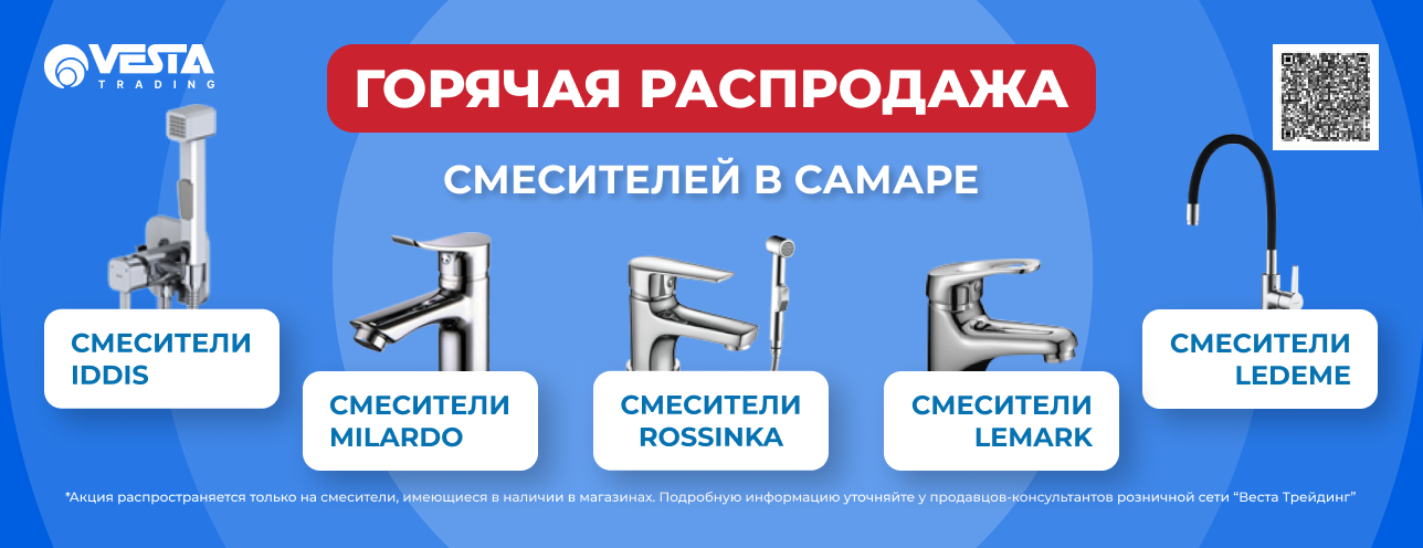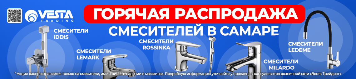 Уважаемые покупатели! Рады вам сообщить, что в Розничной сети "Веста Трейдинг" г. Самара проводится горячая распродажа на смесители из наличия...