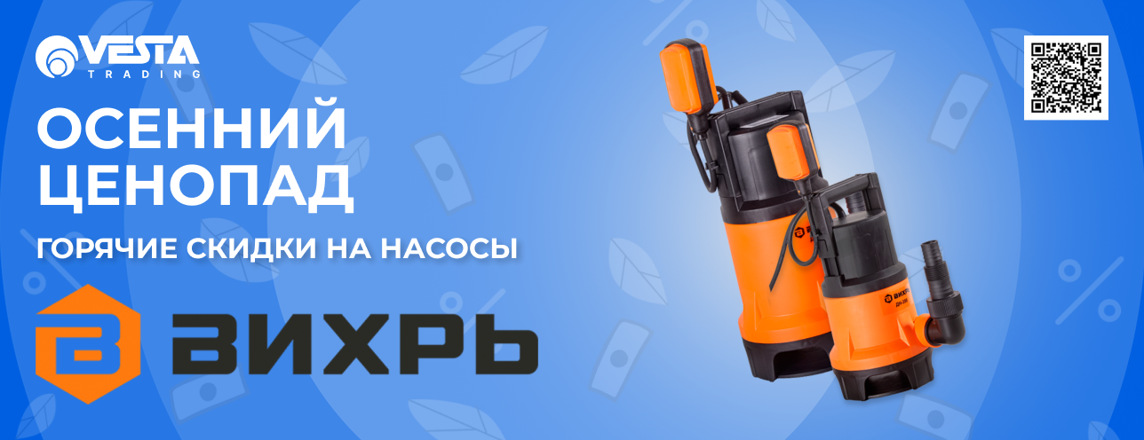 Уважаемые покупатели, только в розничной сети «Веста Трейдинг» вас ждут специальные условия на покупку насосов «Вихрь». ..