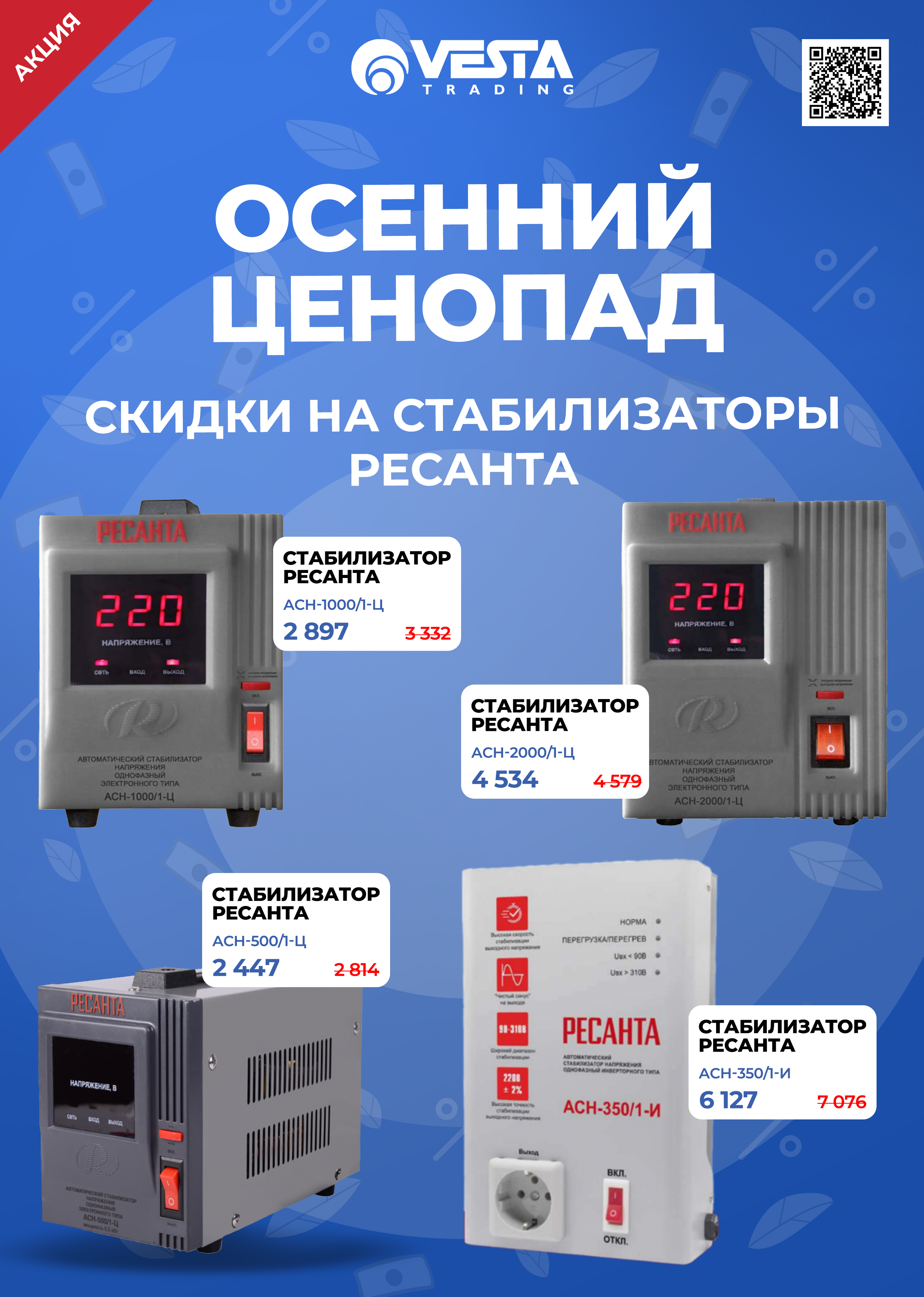 Уважаемые покупатели! В розничной сети "Веста Трейдинг" вас ждут специальные условия на покупку стабилизаторов РЕСАНТА из подборки. Ждем вас в наших магазинах и на сайте www.vestatrade.ru