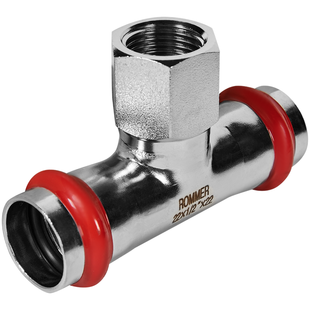 Тройник-переходник Rommer ВПр-ВР, 22х1/2, из нержавеющей стали прессовой
