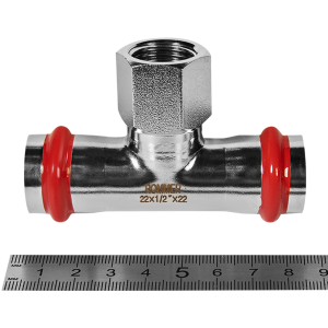 Тройник-переходник Rommer ВПр-ВР, 22х1/2, из нержавеющей стали RSS-0015-002212 разветвляет трубопровод с подключением резьбового элемента, обеспечивает надежность и герметичность.
