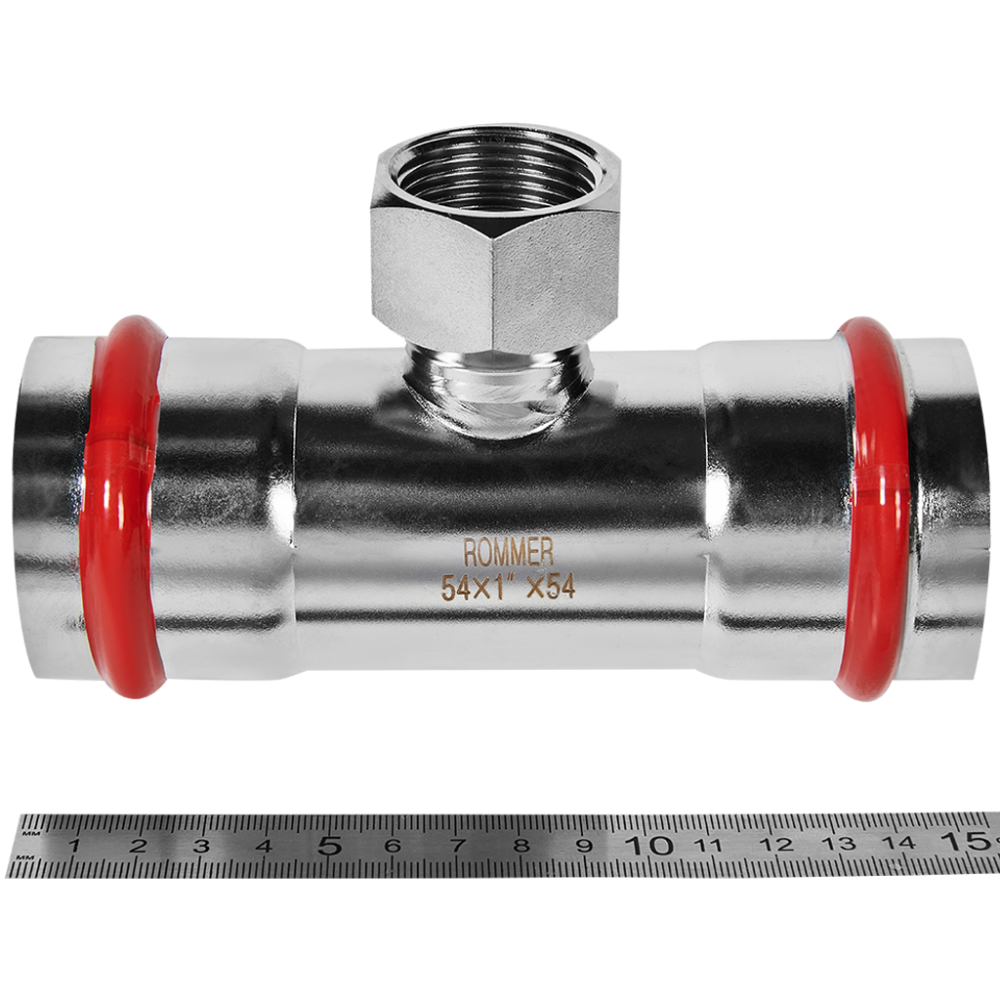 Тройник-переходник Rommer ВПр-ВР, 54х1, из нержавеющей стали RSS-0015-000541 разветвляет трубопровод с подключением резьбового элемента, обеспечивает надежность и герметичность.