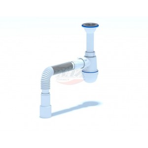 Сифон для кухонной мойки с диаметром сливного отверстия 50мм, бутылочного типа. С литым выпуском и нержавеющей решеткой, для подключения к канализации комплектуется гибкой трубой 40*40/50мм.
