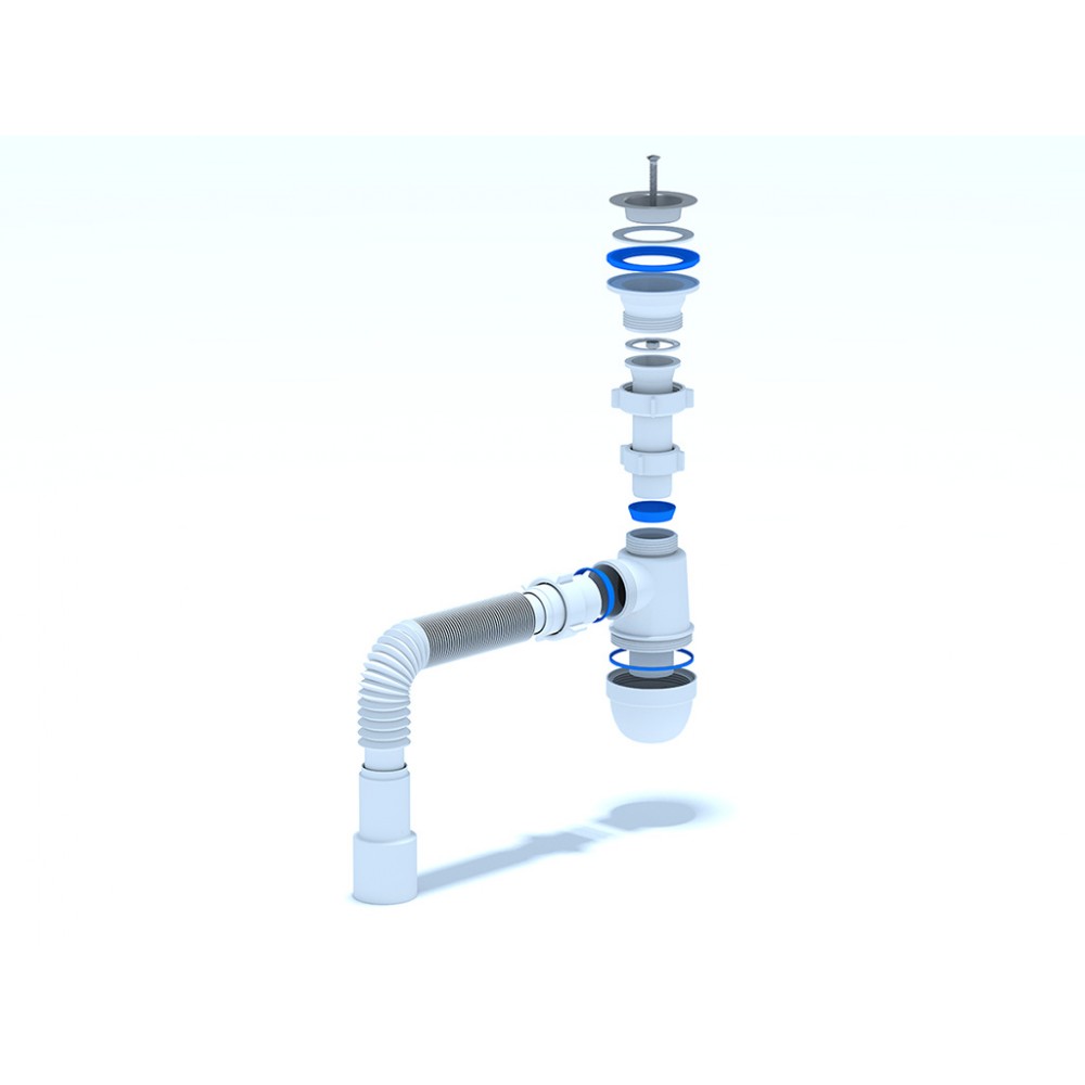 - ✓ Гибкая труба 40×50 мм облегчает установку сифона даже в труднодоступных местах и позволяет адаптировать конструкцию под особенности монтажа.