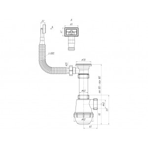 Комплектация: сифон с выпуском и прямоугольным гибким переливом, упаковка.