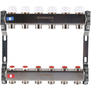 Полное наименование: Коллектор из нерж. стали 1"x3/4" ROMMER без расходомеров 6 вых.