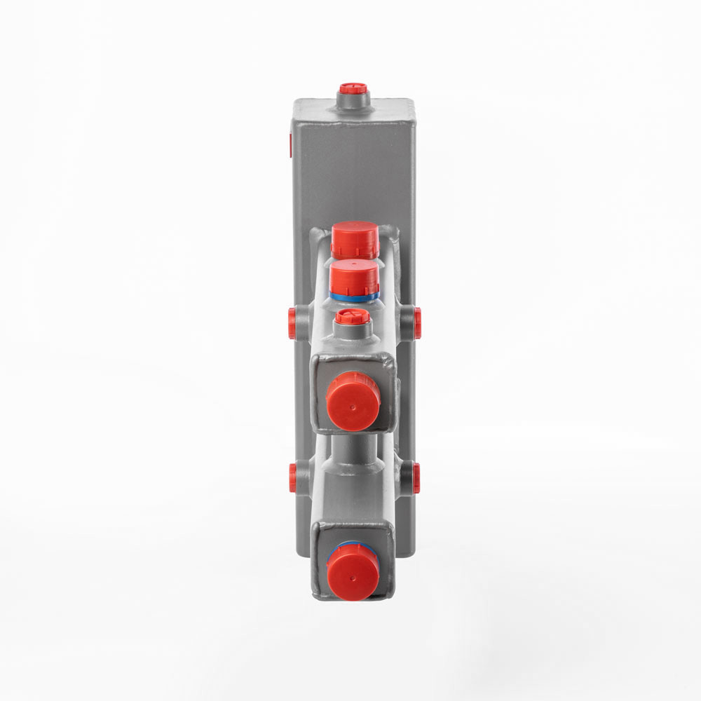 Серия VTc.100.SN включает в себя горизонтальные гидроразделители с возможностью подключения трех и пяти контуров.