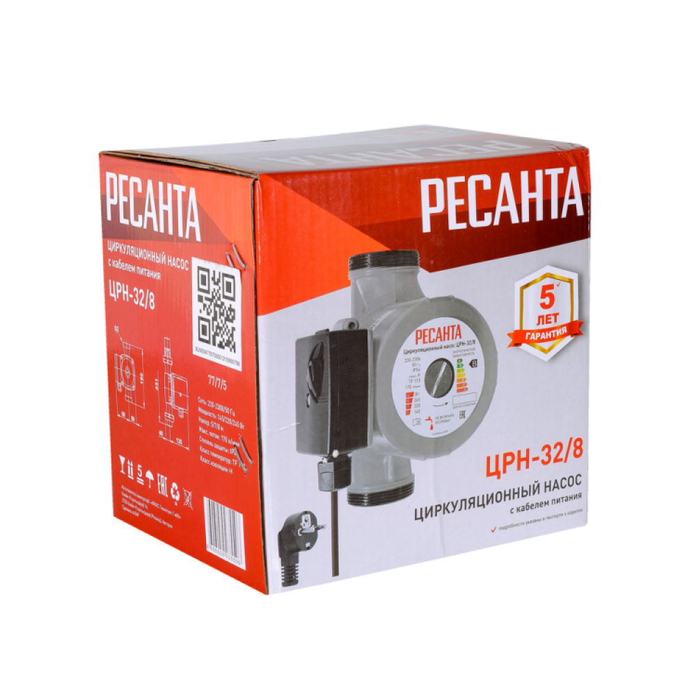 Циркуляционный насос Ресанта ЦРН-32/8 с трехступенчатой мощностью 145/220/245 Вт, максимальным напором до 8 м и потоком до 170 л/мин предназначен для циркуляции теплоносителя в замкнутых системах отопления.