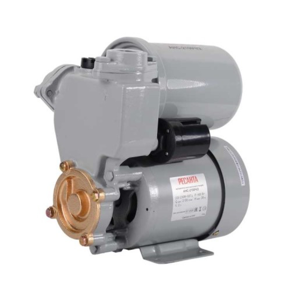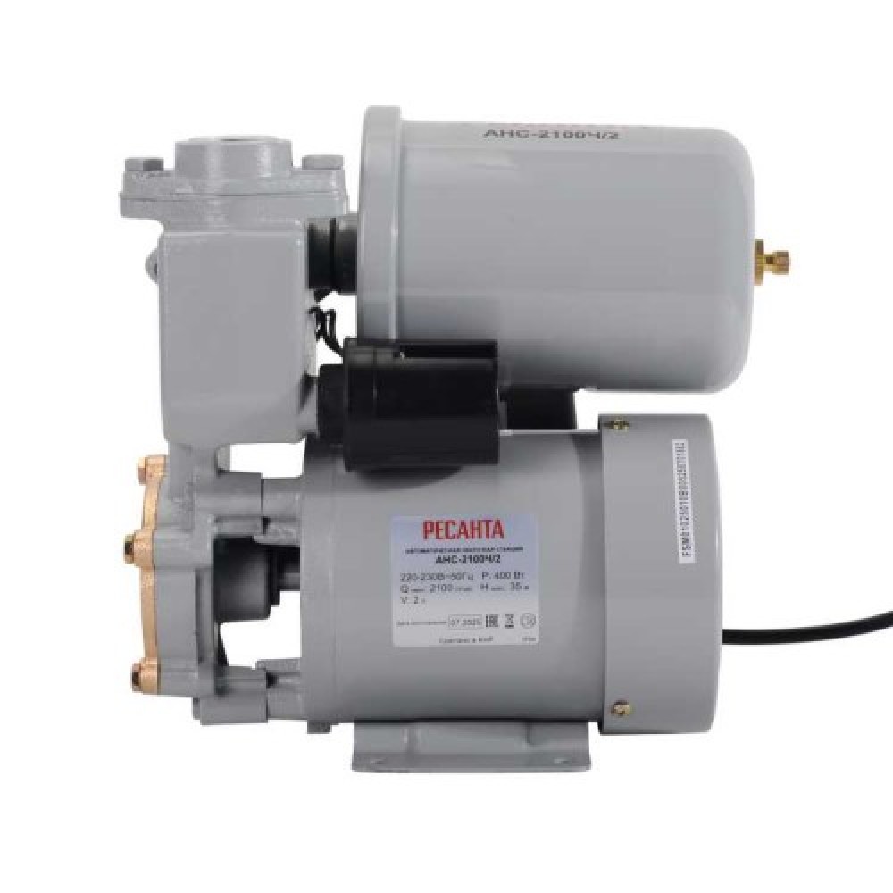 Автоматическая насосная станция Ресанта АНС-2100Ч/2 мощностью 400 Вт, максимальным напором 35 м и подачей до 2100 л/ч (≈35 л/мин) предназначена для автоматического водоснабжения дома и дачи из колодца или накопительной емкости.