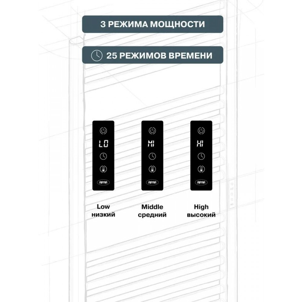 Полное наименование Полотенцесушитель электрический "RIFAR D-LINE" DL-120-45-BM, цвет "Чёрный янтарь", мощность 250 Вт