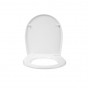 Пластиковое сиденье для унитаза белого цвета классической округлой формы.