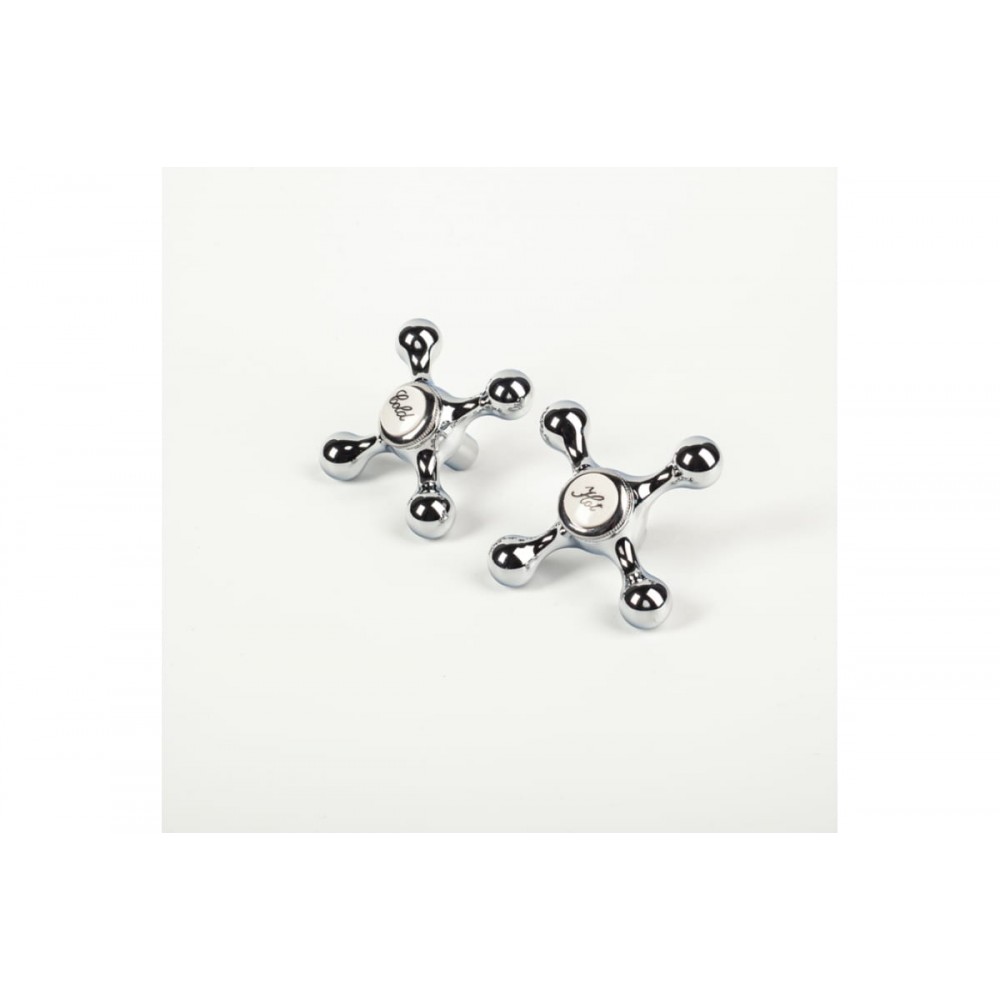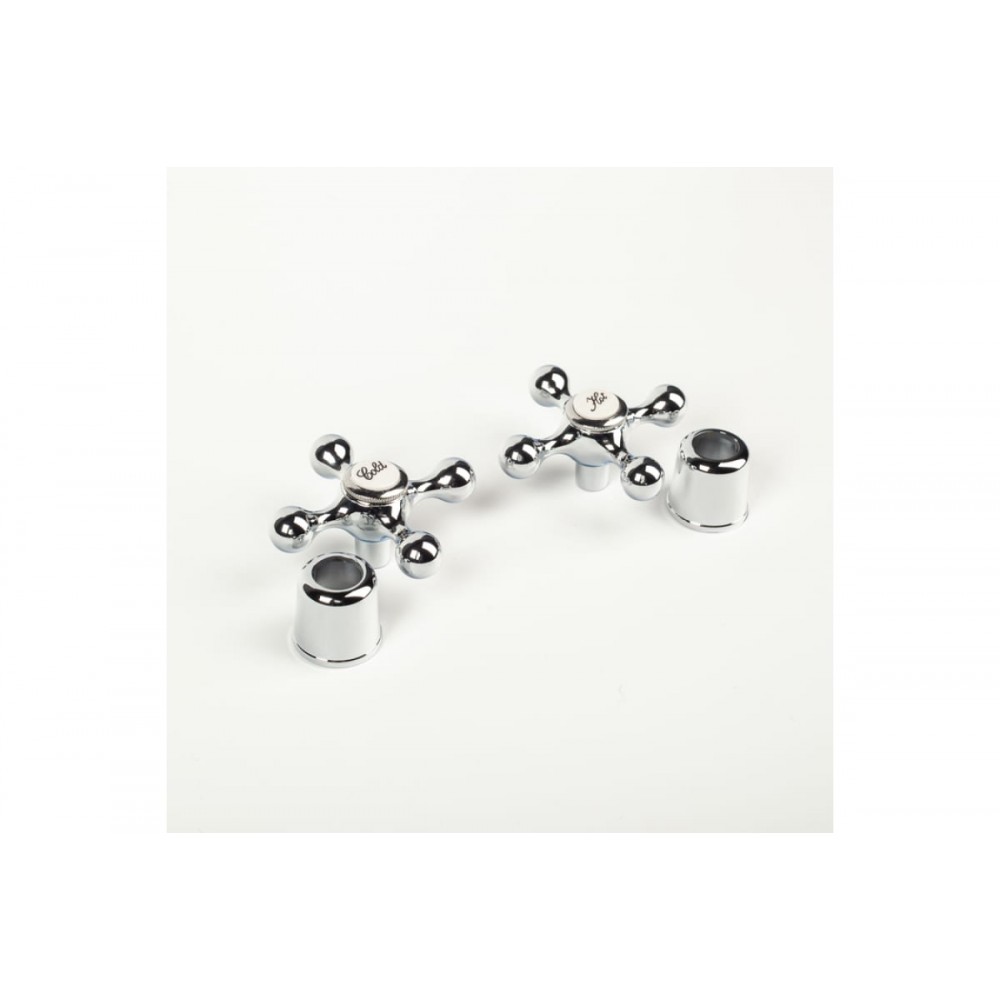 Универсальные сменные ручки для двухзахватного смесителя классической крестообразной формы. Размер штока кран-буксы – 8х24. Комплект из 2 штук.
