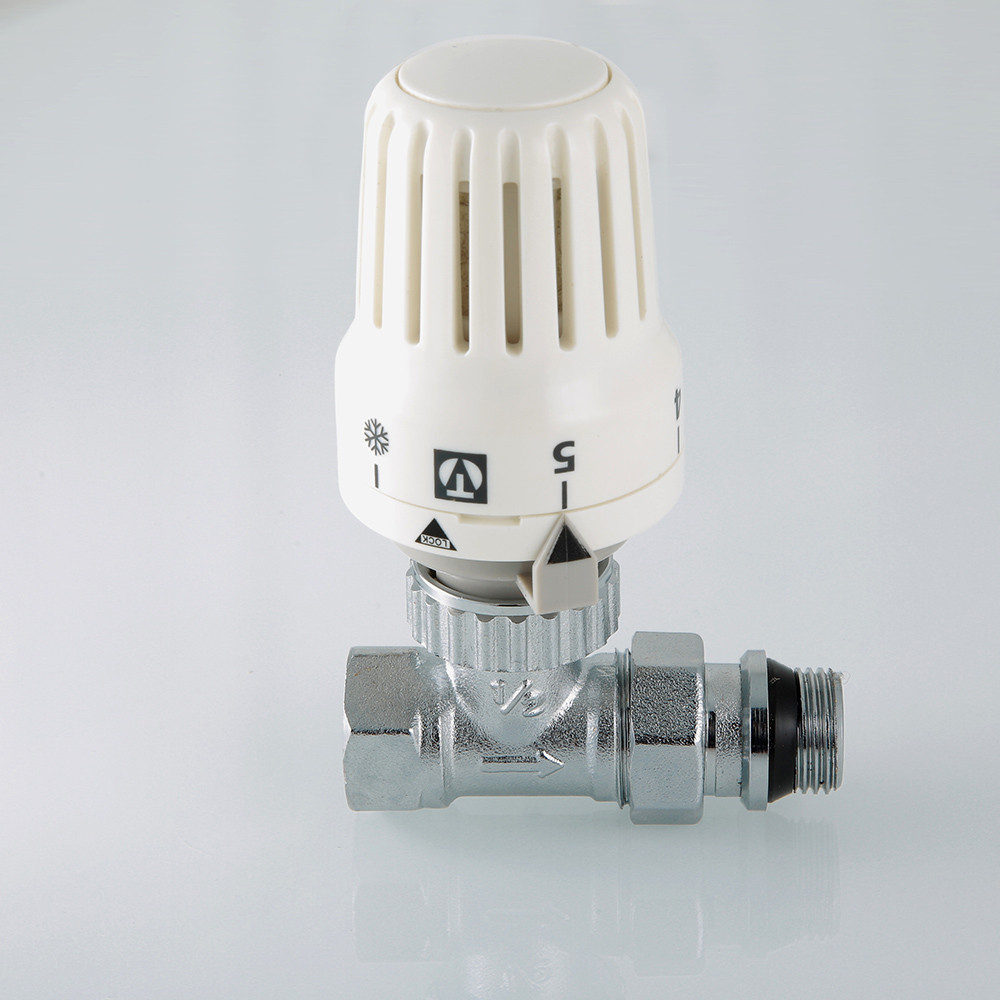 Прямой клапан для автоматического регулирования расхода теплоносителя через отопительный прибор. Укомплектован термостатической головкой жидкостного типа. Предназначен для использования в системах отопления с рабочей температурой до 110 °С и рабочим давлением до 10 бар в зданиях и сооружениях любого назначения. Изделие соответствует требованиям стандарта EN 215, часть 1 и ГОСТа 30815. Использование терморегуляторов позволяет автоматически поддерживать температуру воздуха в помещениях на заданном уровне сточностью до 1 °С. Наличие полусгона дает возможность монтировать и демонтировать клапан без демонтажа трубопровода. Ремонтопригодный. Резьба трубных присоединений – внутренняя/наружная, для термостатической головки – наружная, М30 x 1,5. Средний полный строк службы терморегулятора – 30 лет.