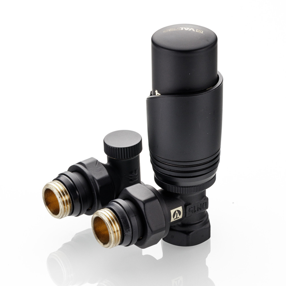 Полное наименование: Комплект терморегулирующего оборудования для радиатора угловой 1/2 ", черный