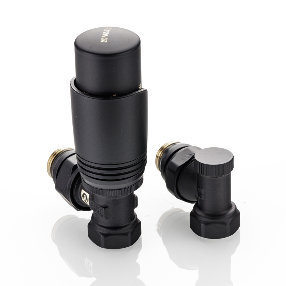 Комплект терморегулирующего оборудования для радиатора угловой 1/2 ", черный