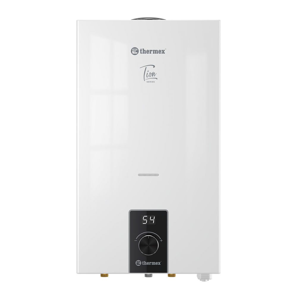 - ✓ Высокий контроль и безопасность. Газовая колонка Thermex Tion оснащена сразу двумя газовыми клапанами категории А, которые работают долго, стабильно и помогают контролировать подачу газа. В серии также предусмотрена защита от перегрева, нагрев без протоков и автоматический таймер отключения на 20 минут.