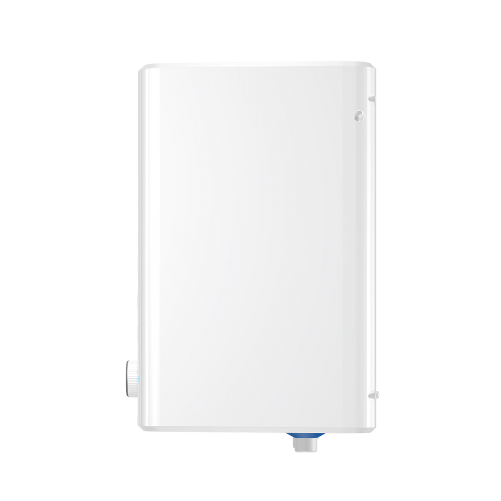 • ✓  Управление одним движением. На лицевой стороне водонагревателя расположен механический терморегулятор, так что у пользователя всегда есть прямой доступ к управлению. На регуляторе есть шкала с обозначением стандартного набора режимов температуры: Low, Eco и Мах. Режим Eco сочетает в себе оптимальную температуру для ежедневного использования при небольшом расходе энергии. Рядом с регулятором расположена лампа индикации нагрева воды, которая погаснет, когда заданная температура будет достигнута.