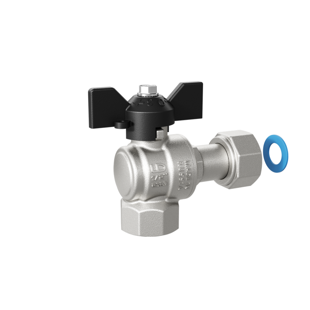 Преимущества товара Кран шаровой 1/2" вн. угловой бабочка с накидн. гайкой LD Pride Ру40 Tmax=150: