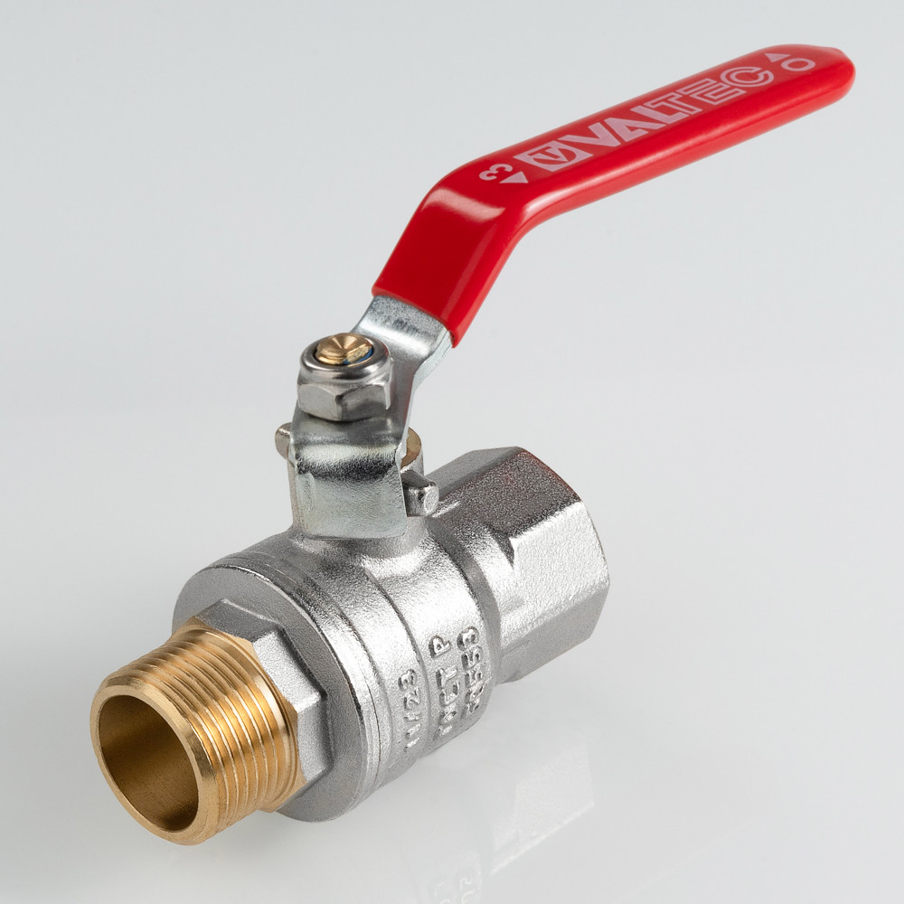 Полнопроходной шаровой кран VT.415.N серии «VALTEC ГОСТ» имеет внутреннюю–наружную резьбу и оснащен стальной оцинкованной рукояткой рычажного (флажкового) типа с покрытием из ПВХ.